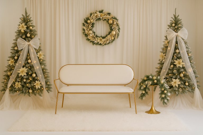 To give you an idea of what you can expect of the set up so you can plan your outfits… because this year’s set is so neutral, literally any colour will work. If you feel like wearing traditional Christmas colours like burgundy, dark green or red, they’ll look amazing. Even soft pastels or neutrals will work too.